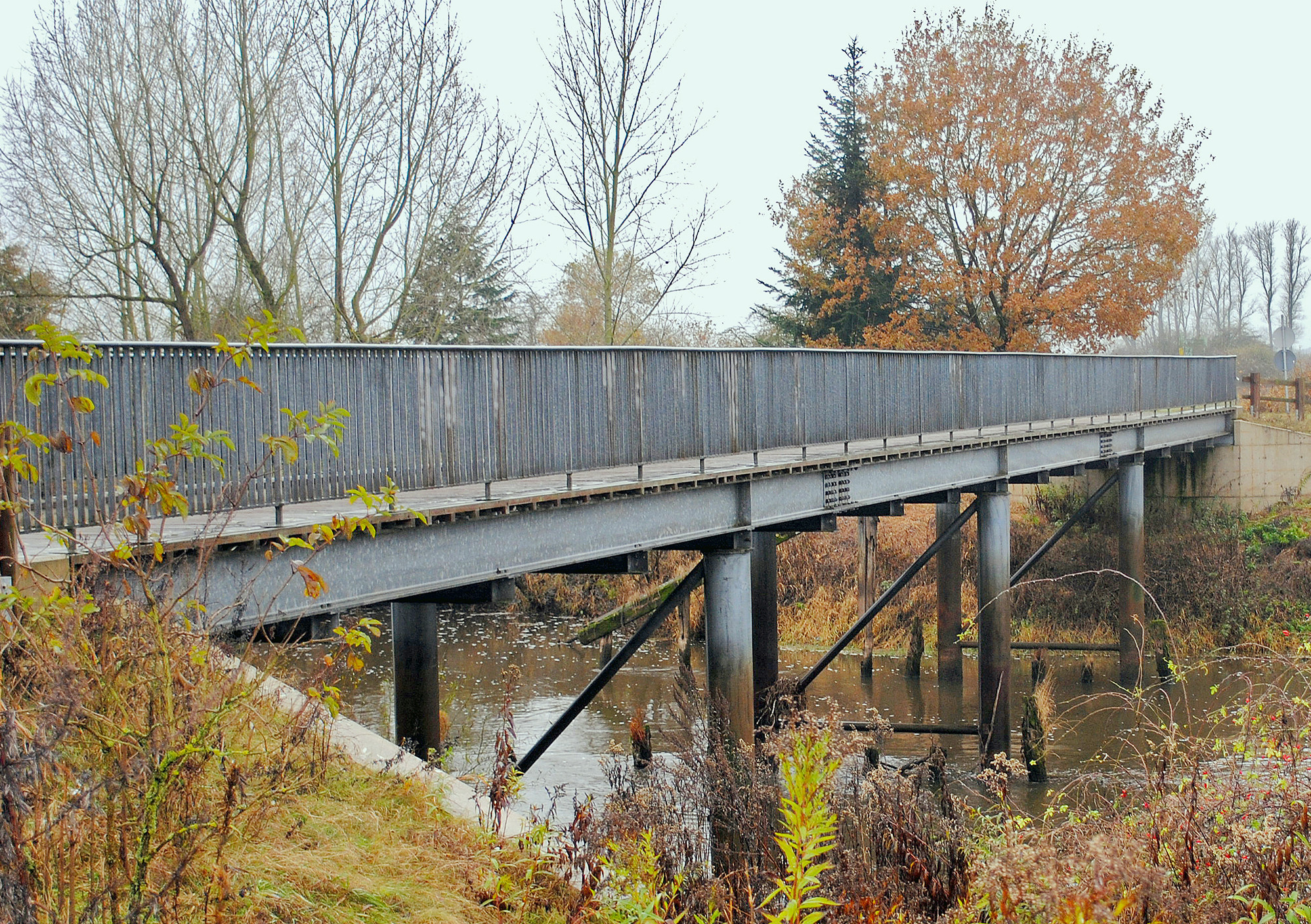 Deutschlands erste feuerverzinkte Stahlbrücke für den Straßenverkehr überspannt die Aller bei Hademstorf. Bei einer Inspektion der ca. 43 m langen Brücke im Jahr 2016 wurde der Zustand der feuerverzinkten Stahlteile mit sehr gut bewertet.