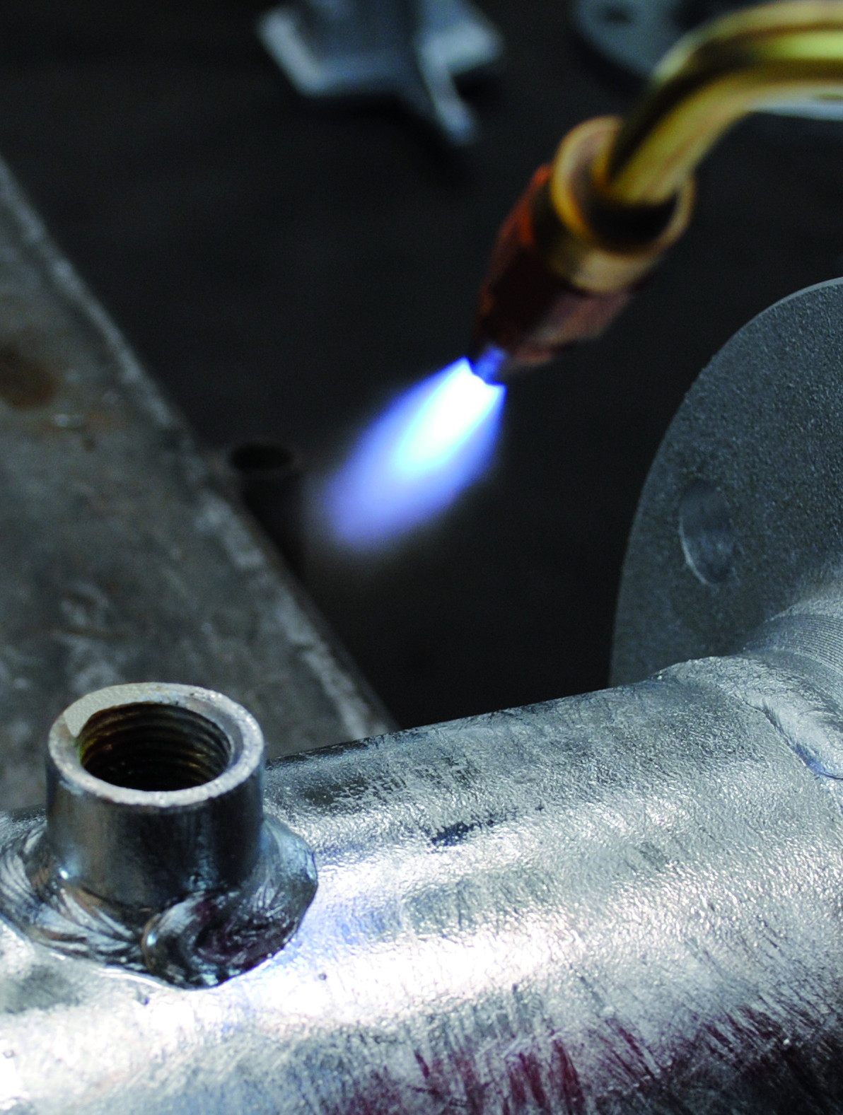 Sind Gewindebolzen an einer Stahlkonstruktion, die feuerverzinkt werden soll, angeschweißt, so ist das Gewinde nach dem Feuerverzinken in der Regel nicht mehr gängig. Ein Nachschneiden des Gewindes mit dem Schneideisen ist mühsam und zeitaufwendig. Einfacher, besser und schneller ist auch hier das Aufschmelzen des Zinküberzuges mit einer Flamme und das Ausbürsten des Zinks aus dem Gewinde mit einer Drahtbürste aus nichtrostendem Edelstahl. Hierbei wird nur ein Teil des Zinks entfernt; das verbleibende Zink sichert den Schutz vor Korrosion. An manchen Bauteilen sind Scharniere oder Gelenke angebracht; wenn deren Zinküberzug abkühlt und erstarrt, verlötet er diese ursprünglich beweglichen Teile, die dann „bombenfest" sitzen. In solchen Fällen sollte man keine Gewalt anwenden, sondern wiederum eine weiche Schweißflamme einsetzen und damit den Zinküberzug aufschmelzen. Wenn das Zink flüssig wird, lässt sich das Scharnierteil wieder bewegen. Man bewegt das Teil bis zum Erstarren des Zinküberzuges hin und her; die Beweglichkeit bleibt dann auch nach dem Abkühlen erhalten.