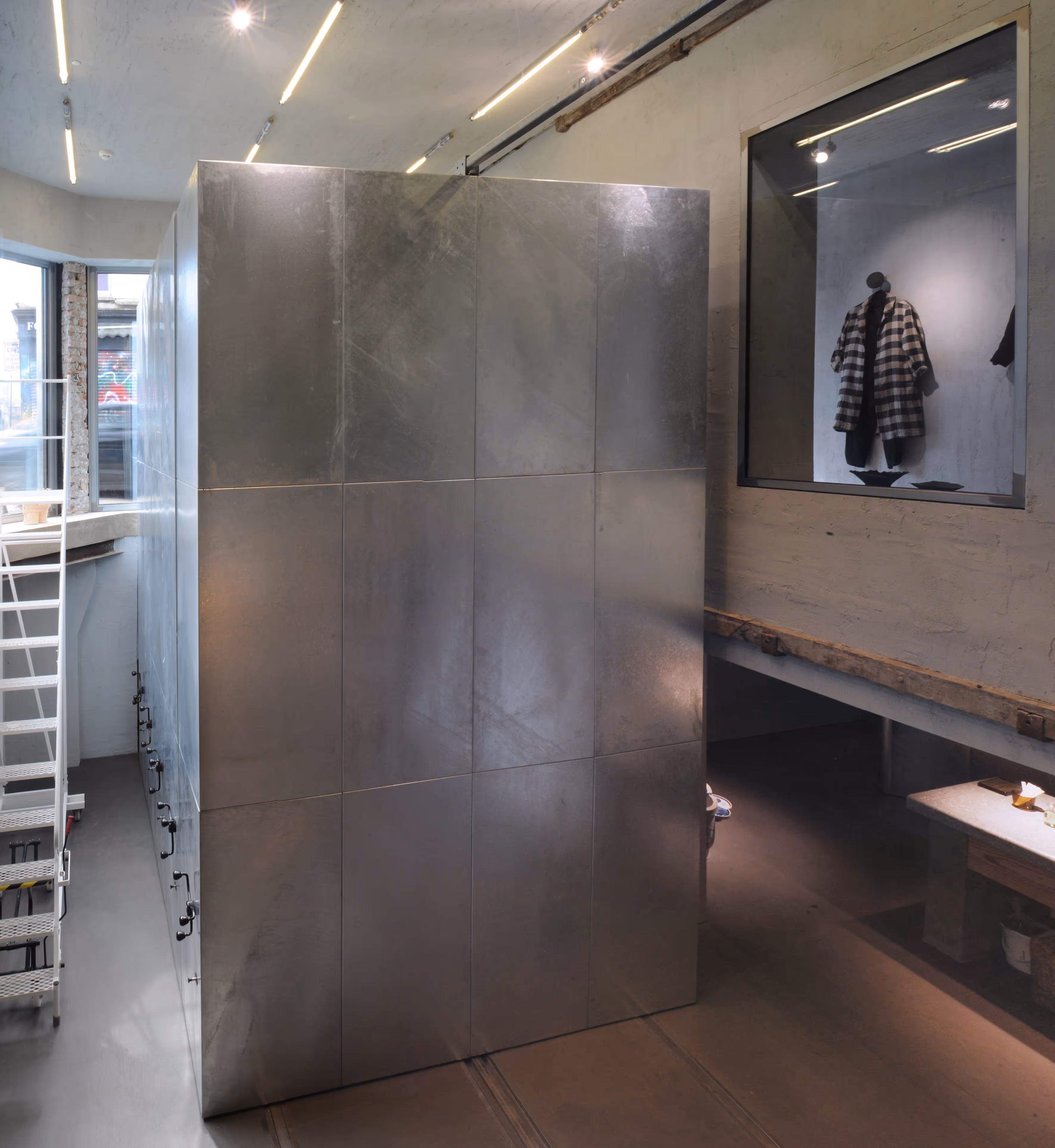 Nachdem feuerverzinkter Stahl zunehmend als Oberfläche von Fassadenbekleidungen Verwendung findet, kommt er mehr und mehr auch als Gestaltungselement im Innenausbau zum Einsatz.