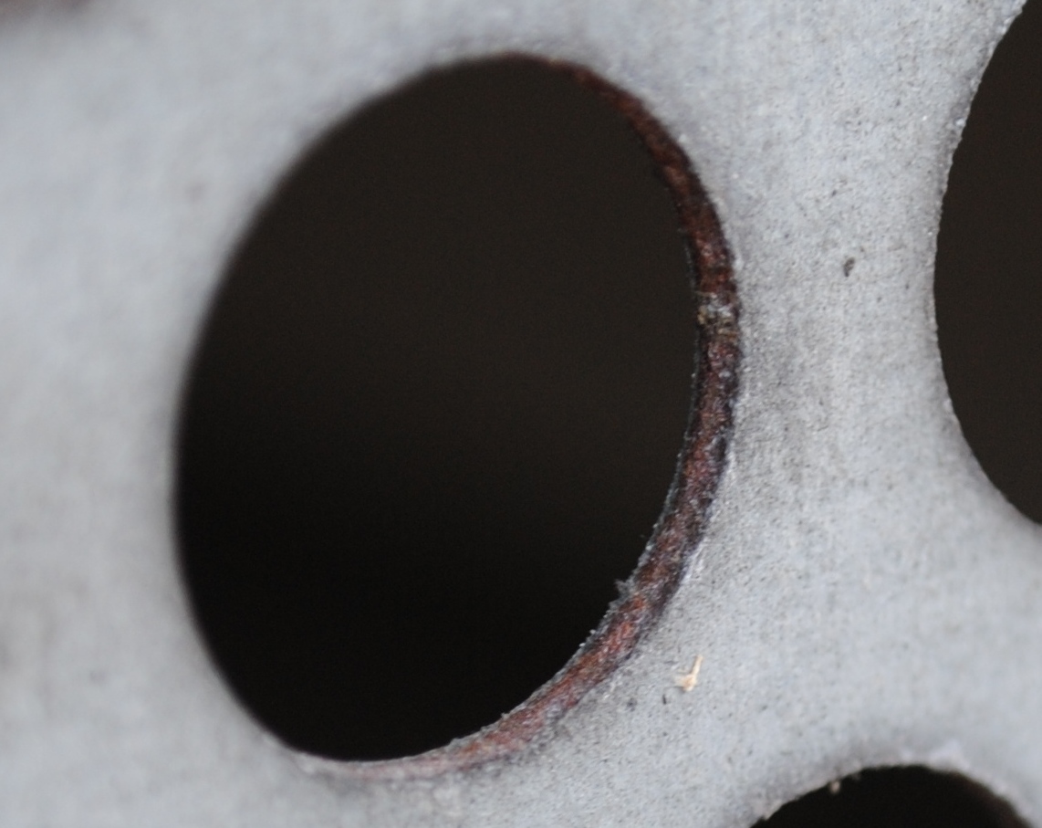 Abb. 1: Beginnender Rotrost an der Schnittfläche eines bandverzinkten und nachträglich gestanzten Bleches