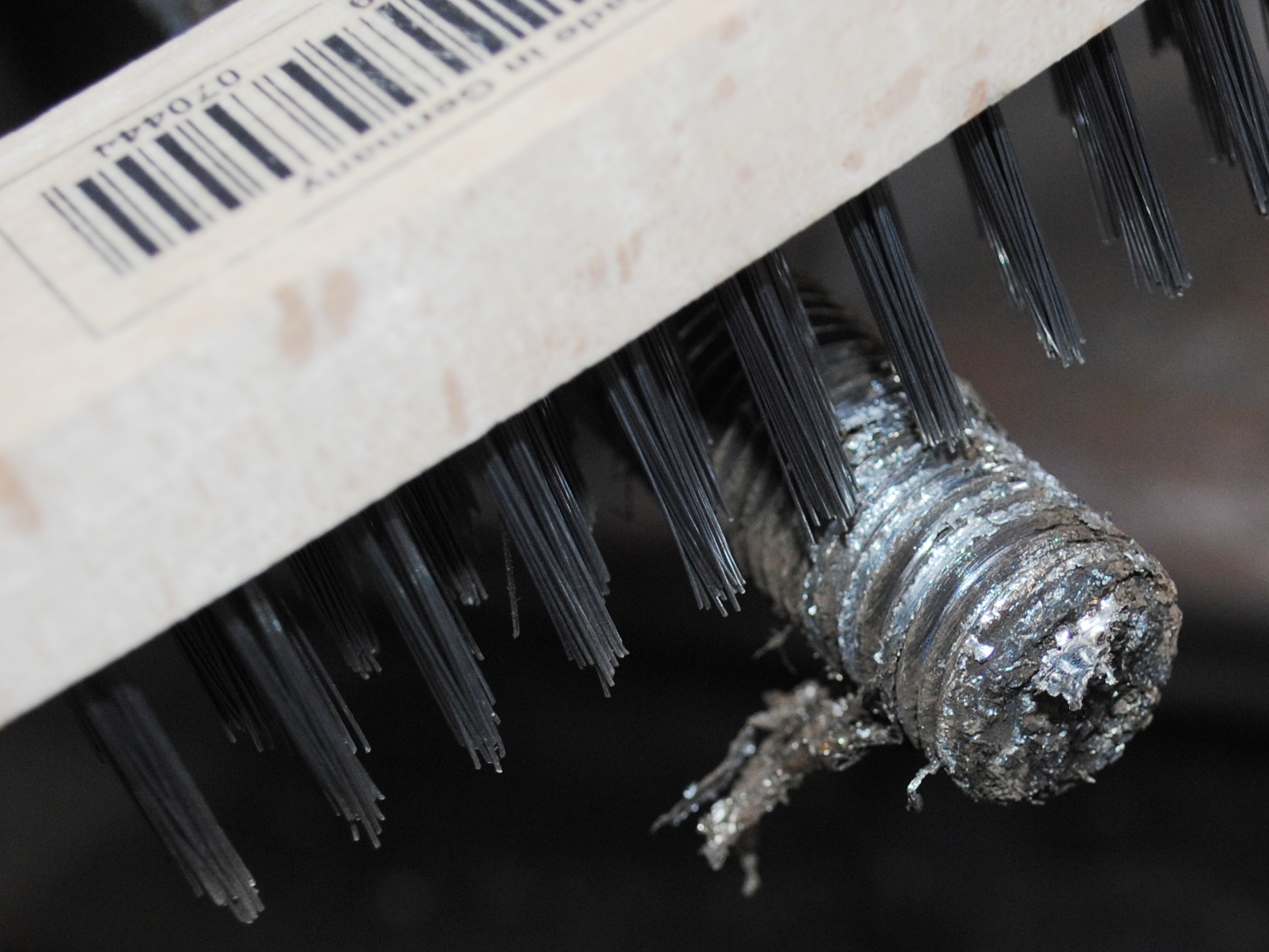 Abb. 2: Nach dem Feuerverzinken müssen die Gewebebandrückstände beispielsweise mittels einer Drahtbürste entfernt werden.