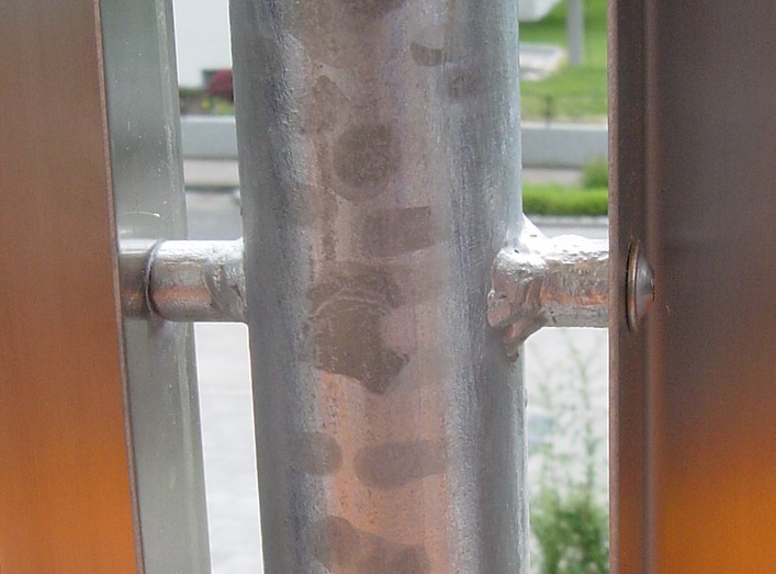 Leichte Weißrostbildung auf einer frisch feuerverzinkten Oberfläche ist ein völlig natürlicher Vorgang und beeinträchtigt nicht die Korrosionsbeständigkeit und Langlebigkeit. Leichte Weißrostbildung tritt auf, wenn Schwitzwasser oder Feuchtigkeit nur kurzzeitig auf frisch verzinkte Oberflächen einwirken kann und danach rasch wieder abtrocknet (Abb. 3). Dieses ist bei ausreichendem Luftzutritt und bei nicht andauernder Befeuchtung der Fall. Eine nennenswerte Schädigung tritt hierbei nicht ein, da die normgemäße Dicke des Zinküberzuges in aller Regel erhalten bleibt. Geringe Mengen an Weißrost werden nach Fortfall der weißrostauslösenden Bedingungen in eine das Zink schützende Deckschicht umgewandelt. Sind die Bedingungen, die die Weißrostbildung ausgelöst haben, nicht mehr vorhanden, breitet er sich auch nicht weiter aus.