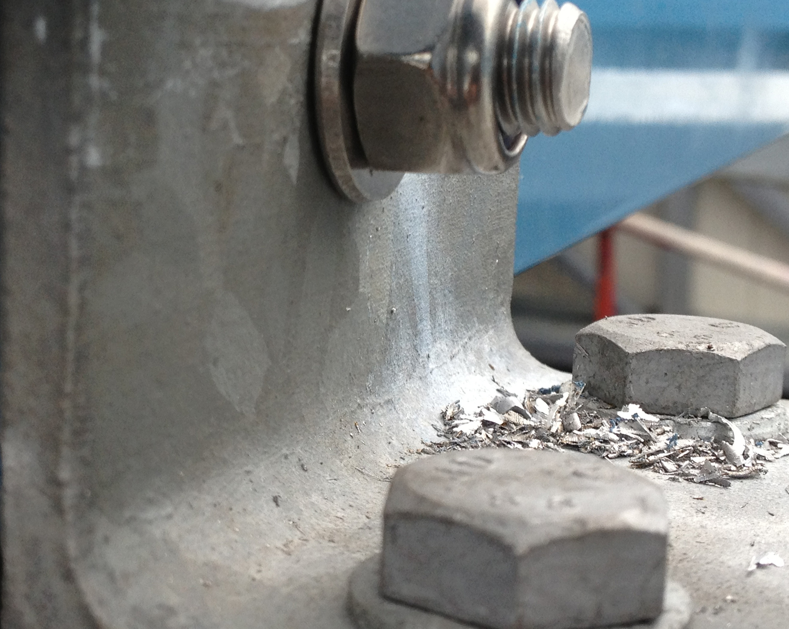 Abb. 3: Falsch - Galvanisch verzinkte Schraube mit beginnendem Rotrost in feuerverzinkter Stahlkonstruktion