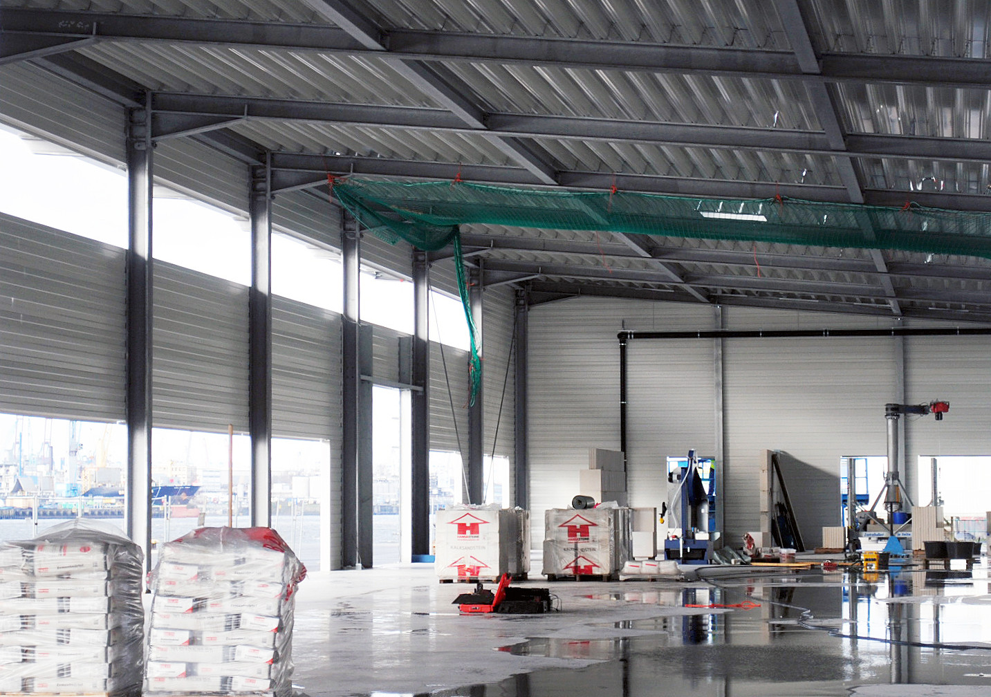 Das Cruise Center Baakenhöft in der Hamburger HafenCity ist ein Beispiel aus dem Hallenbau, das auf R30-Brandschutz durch Feuerverzinken setzt. Das Cruise Center Baakenhöft wird bis 2023 als Ausweichterminal dienen und wird darüber hinaus als multifunktionale Veranstaltungsstätte genutzt werden. Der als eingeschossige Halle in feuerverzinkter Stahlskelettbauweise ausgeführte Bau verfügt über eine Grundfläche von rund 1.050 Quadratmetern. Das Stahltragwerk besteht aus einer Reihung von 10 Rahmenelementen mit Stützen aus HEM 240 bzw. HEM 280-Profilen und HEM 280-Riegeln, die jeweils mittels 4 HEB 200-Profilen verbunden wurden. Der Korrosionsschutz durch Feuerverzinken deckt beim Cruise Center Baakenhöft die Brandschutzanforderungen mit ab, ohne hierfür zusätzliche Kosten zu verursachen.
