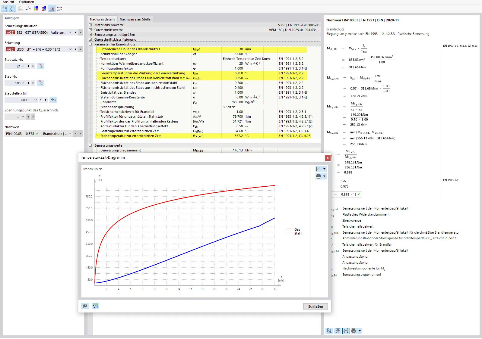 Mit dem Add-On Stahlbemessung für RFEM 6 / RSTAB 9 kann die Bauteiltemperatur zum Nachweiszeitpunkt automatisch nach den in der Norm angegeben Temperaturzeitkurven einfach ermittelt werden. Mit der Software ist es möglich, die vorteilhaften Eigenschaften der Feuerverzinkung bei der Bemessung für den Brandfall zu berücksichtigen. Das Add-On Stahlbemessung ist in die Hauptprogramme RFEM 6 und RSTAB 9 voll integriert. Die detaillierte Ausgabe enthält alle relevanten Zwischenergebnisse und stellt die Grundlage für eine transparente und vollständige Dokumentation dar.