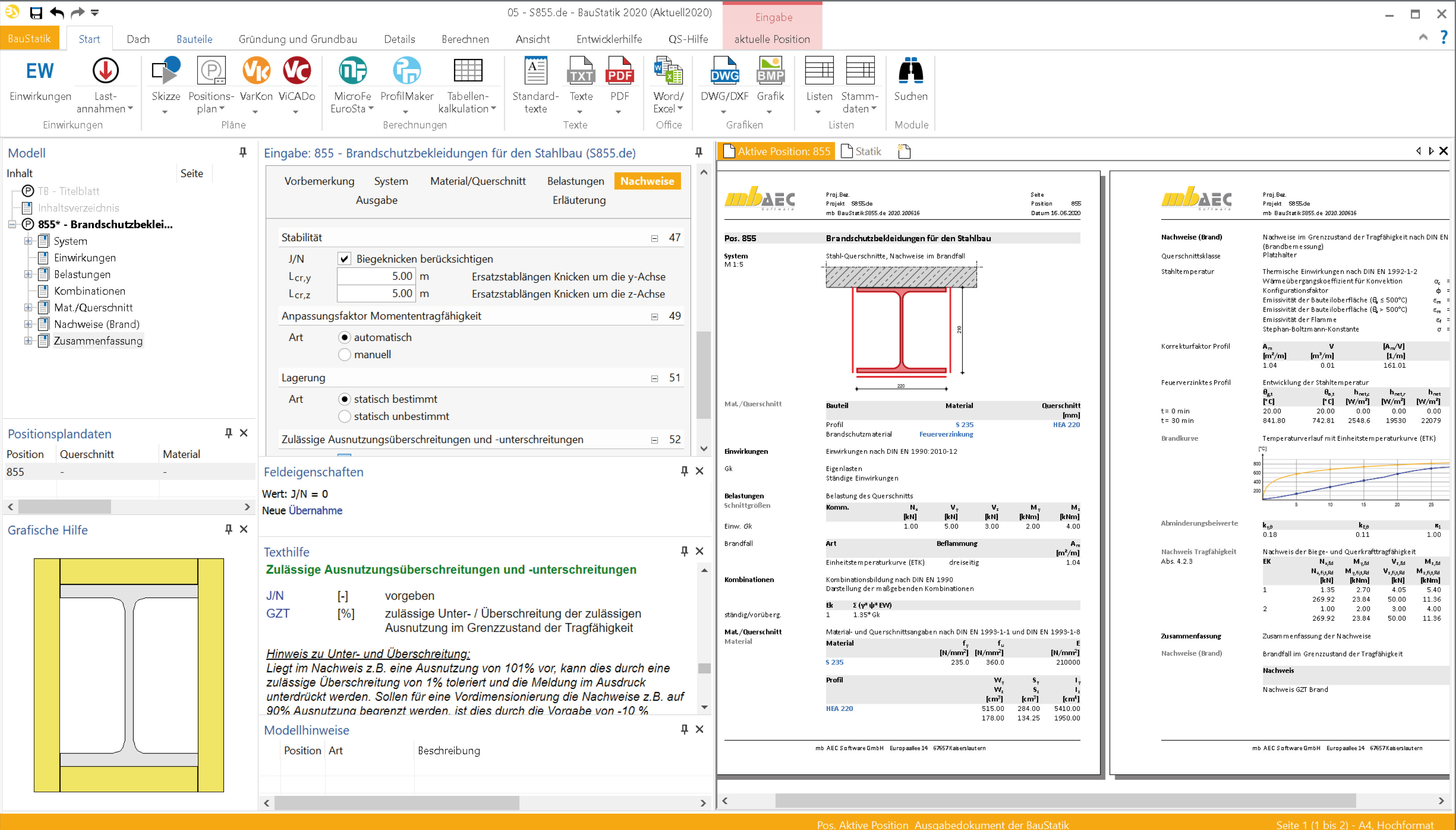Statik-Modul S855.de kann Brandschutz durch Feuerverzinken Bemessen