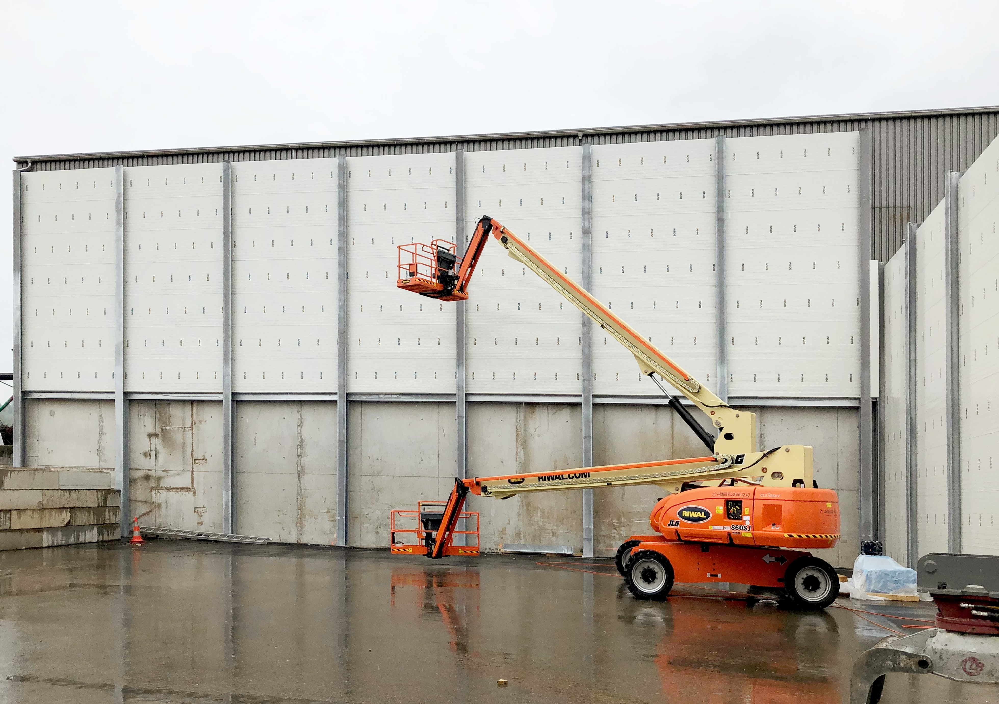 Die Römer AG betreibt in Wohlen im Aargau ein Entsorgungszentrum für Metall- und Papierabfälle sowie Altholz und Kunststoffrecycling. In 2018 wurde mit der Planung einer neuen Sortieranlage sowie einer neuen Halle begonnen, die den Holzlagerplatz überdacht. Aus Brandschutzgründen mussten im Rahmen dieser Baumaßnahme zwei Brandschutzwände erstellt werden, für die eine Feuerwiderstandsdauer von 30 Minuten (R30) gefordert war. Für die Stützen der rund 13 bzw. 9 Meter hohen, in Stahlbauweise konstruierten Brandschutzwände kamen HEB340-Profile zum Einsatz, die feuerverzinkt wurden. Als Ausfachung wurden Brandschutzfassaden-Paneele verwendet. Da an einer der beiden Brandschutzwände Brandschutzmaßnahmen erst ab einer Höhe von ca. 5 Metern erforderlich waren, wurden zum Auflegen der Brandschutzpaneele feuerverzinkte UPE240-Profile als Träger verwendet. Durch die Feuerverzinkung konnte nicht nur ein dauerhafter Korrosionsschutz geschaffen, sondern auch gewährleistet werden, dass die Stahlkonstruktion die geforderte Feuerwiderstandsdauer von 30 Minuten erreicht.