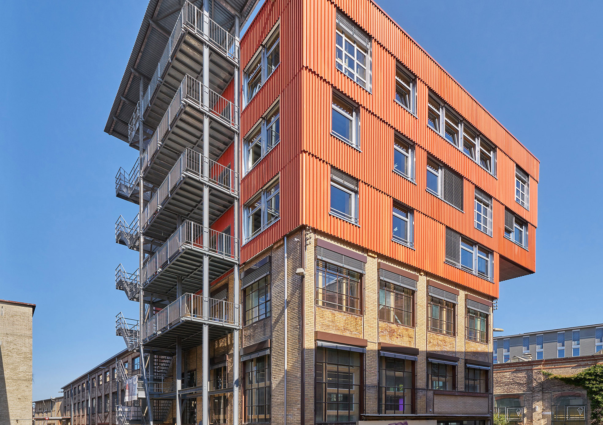 Kommentar der Jury: Mit der Aufstockung einer bestehenden Lagerhalle, unter maximalem Einsatz von wiederverwendeten Bauteilen, hat das baubüro in situ ein zukunftsweisendes Projekt geschaffen, das höchste Nachhaltigkeitsanforderungen erfüllt ohne Abstriche an den Architekturanspruch zu machen. K.118 zeigt, dass durch Wiederverwendung der CO2-Fußabdruck im Vergleich zu einem konventionellen Neubau um 60% verringert werden kann, aber auch die Herausforderung an die Planenden, weil der Planungsprozess sich umkehrt. Dies zeigt sich exemplarisch an der rund 22 Meter hohen und 28 Jahre alten feuerverzinkten Stahltreppe, die K.118 erschließt und vorher als Fluchttreppe an einem Bürogebäude diente. Durch die Wiederverwendung der Treppe wurden 22 t CO2 eingespart. Die Treppe ist zudem ein gutes Beispiel für die Umkehrung des Planungsprozesses, denn ihre Podeste haben die Geschosshöhen des Gebäudes bestimmt. K.118 zeigt wie nachhaltiges und ressourcenschonendes Bauen von morgen aussehen kann.