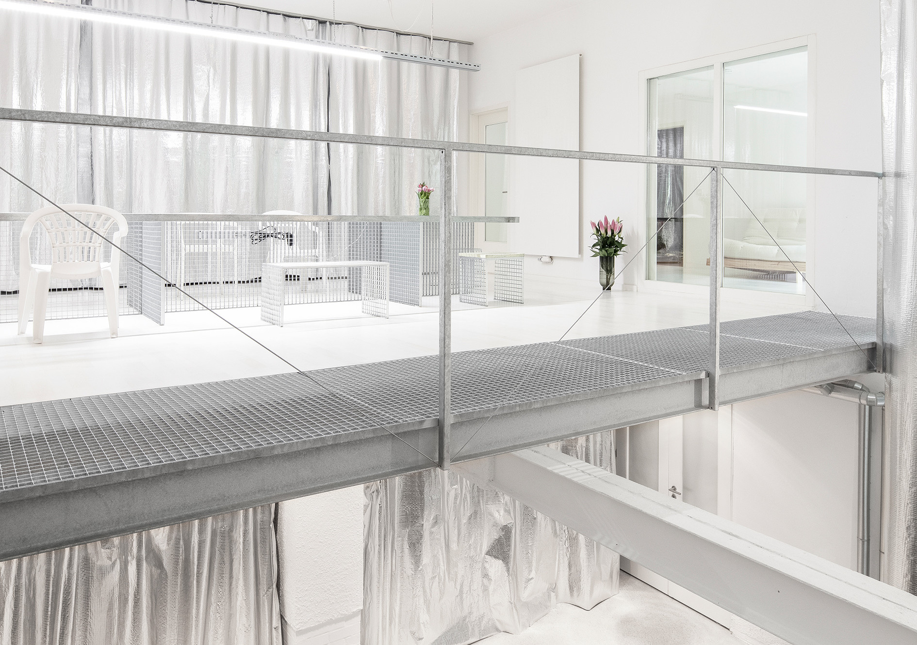 Projekt: Büro mit silbernem Vorhang
