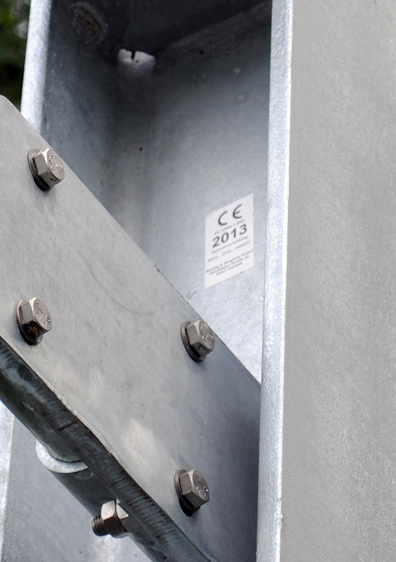 - Nichtrostender Edelstahl: Die häufigste Metallpaarung von nichtrostendem Edelstahl und Zink ist die Verwendung von rostfreien Schrauben an verzinkten Stahlkonstruktionen. In neutralen atmosphärischen Umgebungen kann diese Kombination unproblematisch und ohne isolierende Zwischenschichten verwendet werden (Abb. 4). Die feuerverzinkte umgebende Oberfläche sollte deutlich größer sein, als die Kontaktfläche des nichtrostenden Edelstahles. Ungünstige Flächenverhältnisse hingegen sollten vermieden werden bzw. durch isolierende Zwischenschichten (z. B. Unterlegscheiben aus Kunststoff) voneinander getrennt werden. Gleiches gilt bei der Anwendung in leitfähigen Wässern.